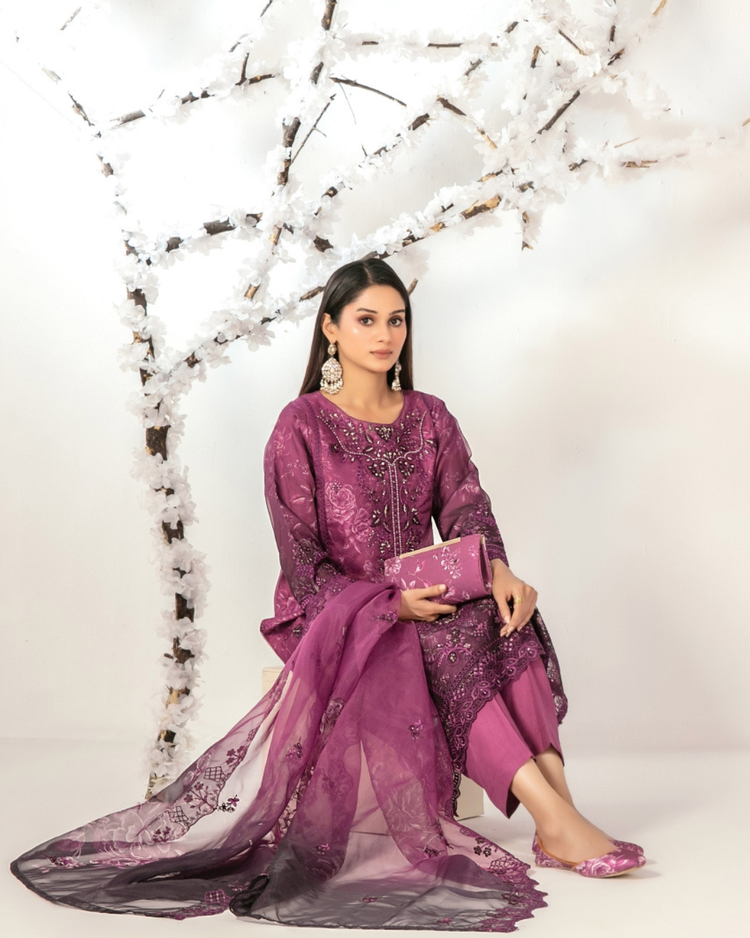 3-PC Semi-Stitched Embroidered Organza Ishq By Tawakkal Fabrics | D-5132