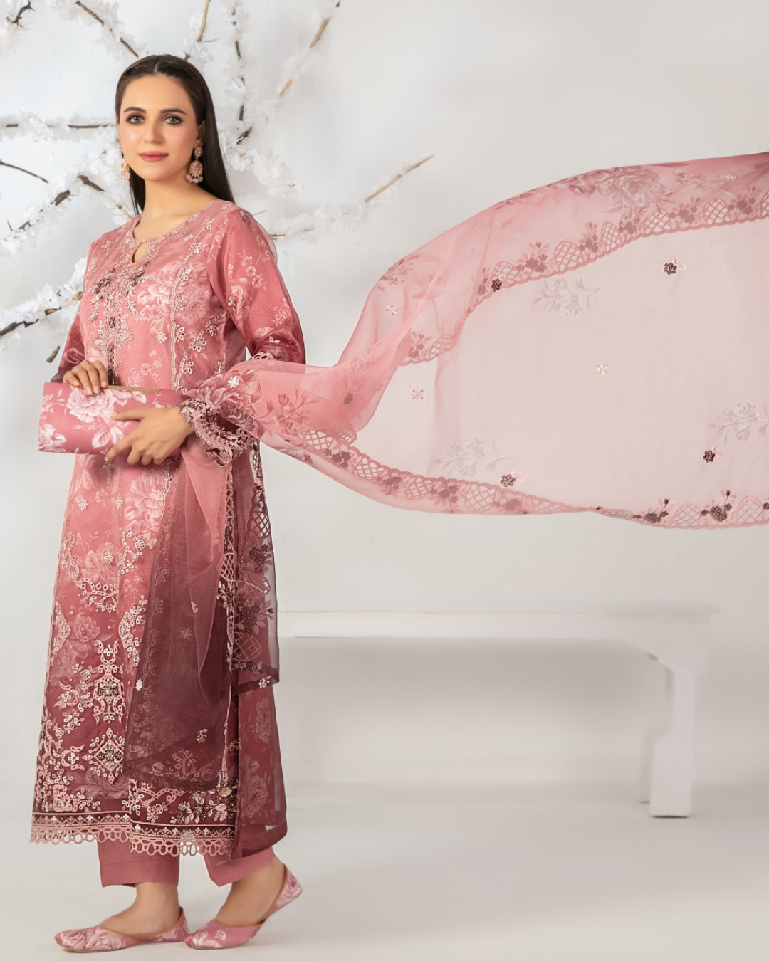 3-PC Semi-Stitched Embroidered Organza Ishq By Tawakkal Fabrics | D-5137