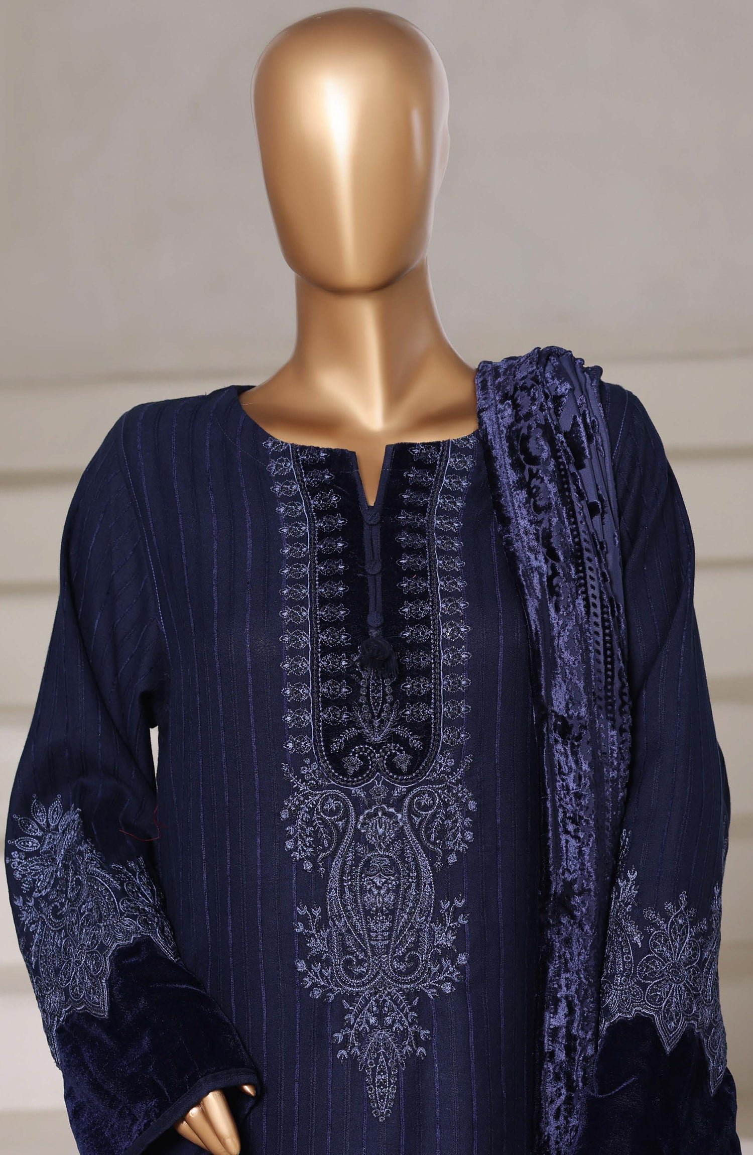 3-PC Stitched Embroidered Dhanak With Palachi Shawl By Sadabahar | Blue