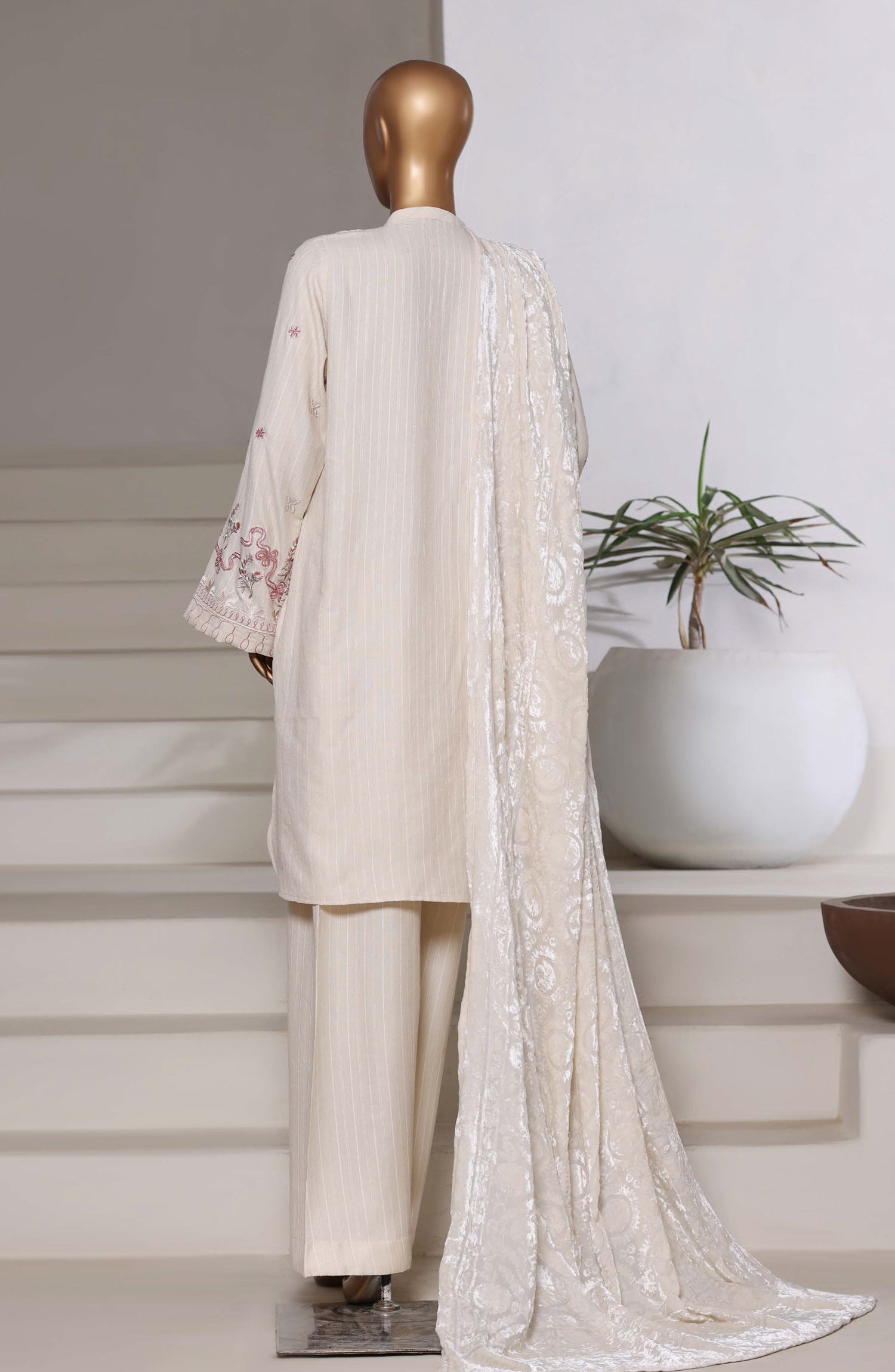 3-PC Stitched Embroidered Dhanak With Palachi Shawl By Sadabahar | Fawn