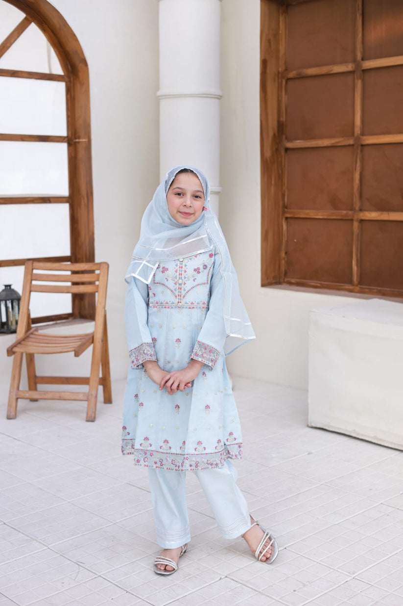 3-PC Stitched Embroidered Javari Net Saheli By Suntex Fabrics | Light Grey