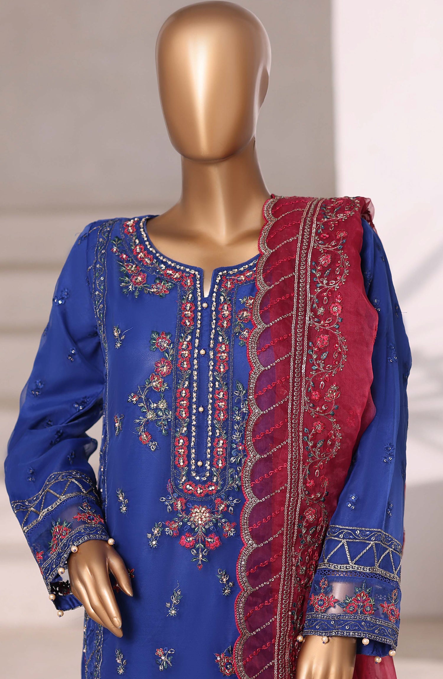 Festive Formal Embroidered Organza Stitched 3 Piece Suit