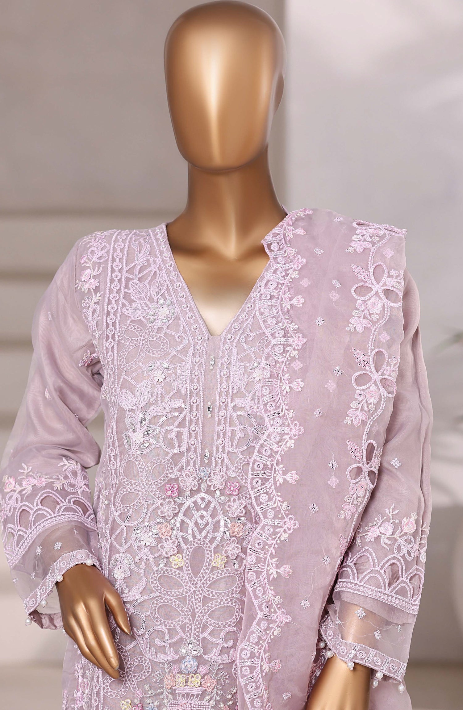 Festive Formal Embroidered Organza Stitched 3 Piece Suit