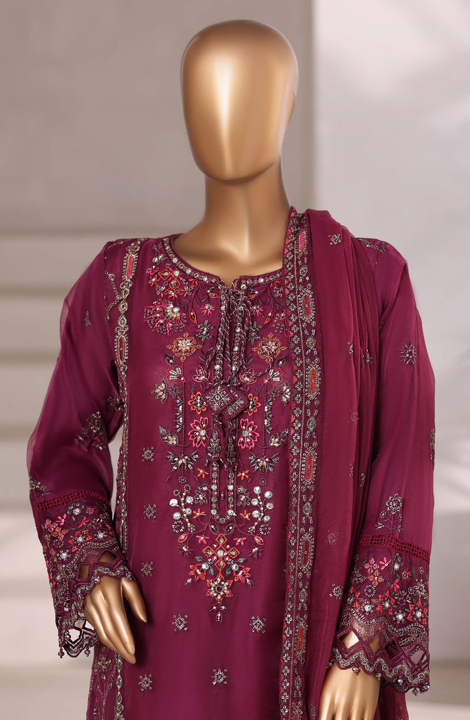 Festive Formal Embroidered Organza Stitched 3 Piece Suit