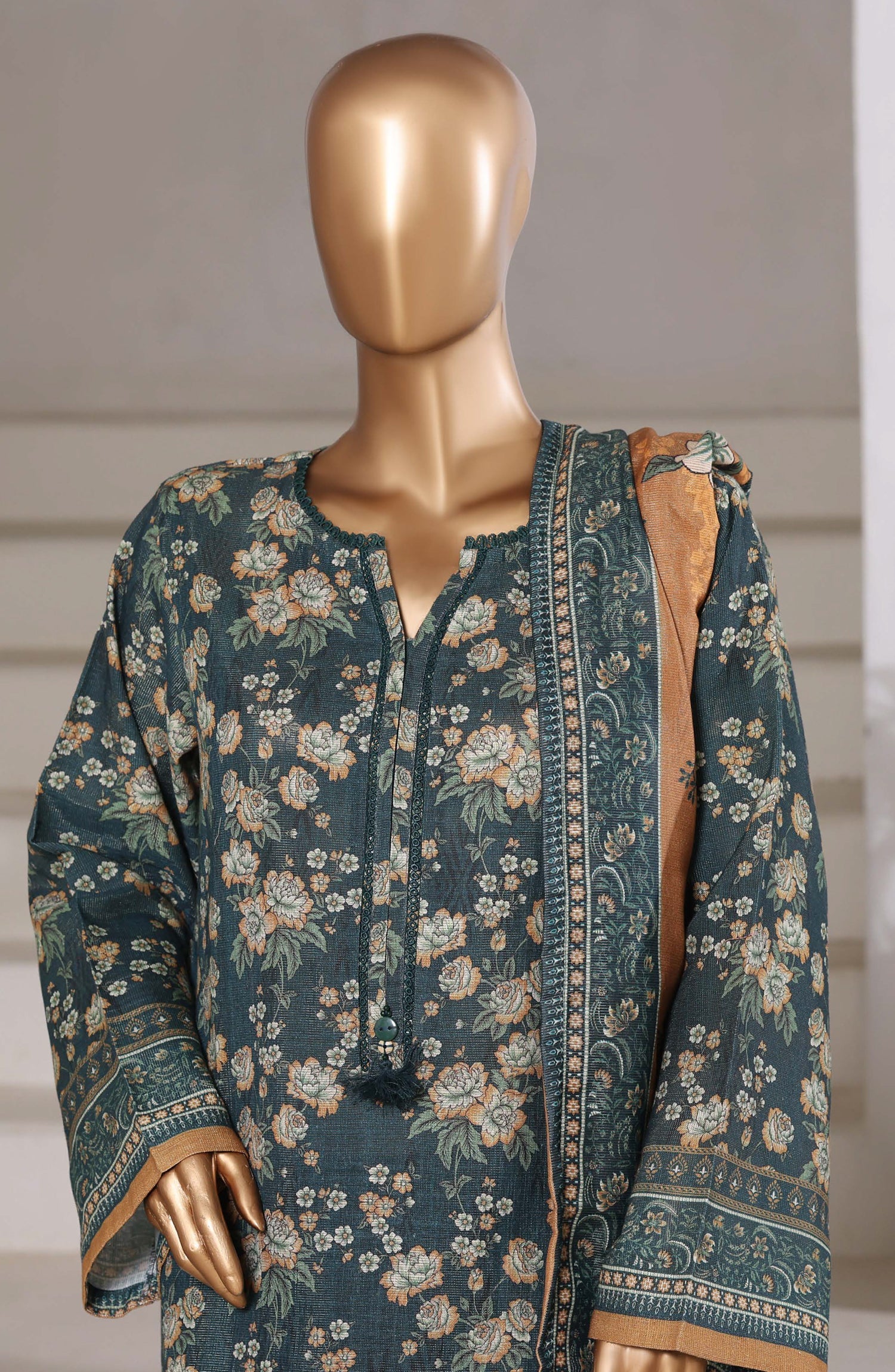 3-PC Stitched Printed Khaddar With Shimmer By Sadabahar | Teal