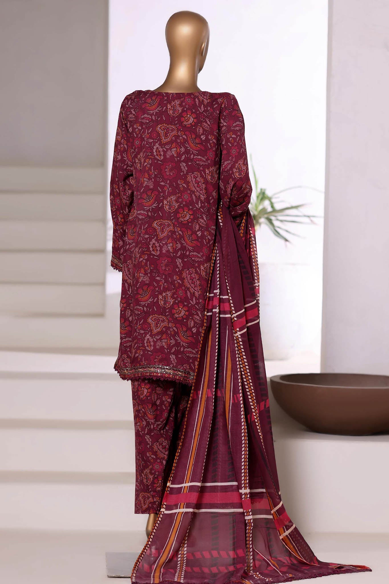 3-PC Stitched Printed Viscose By Sadabahar | Maroon