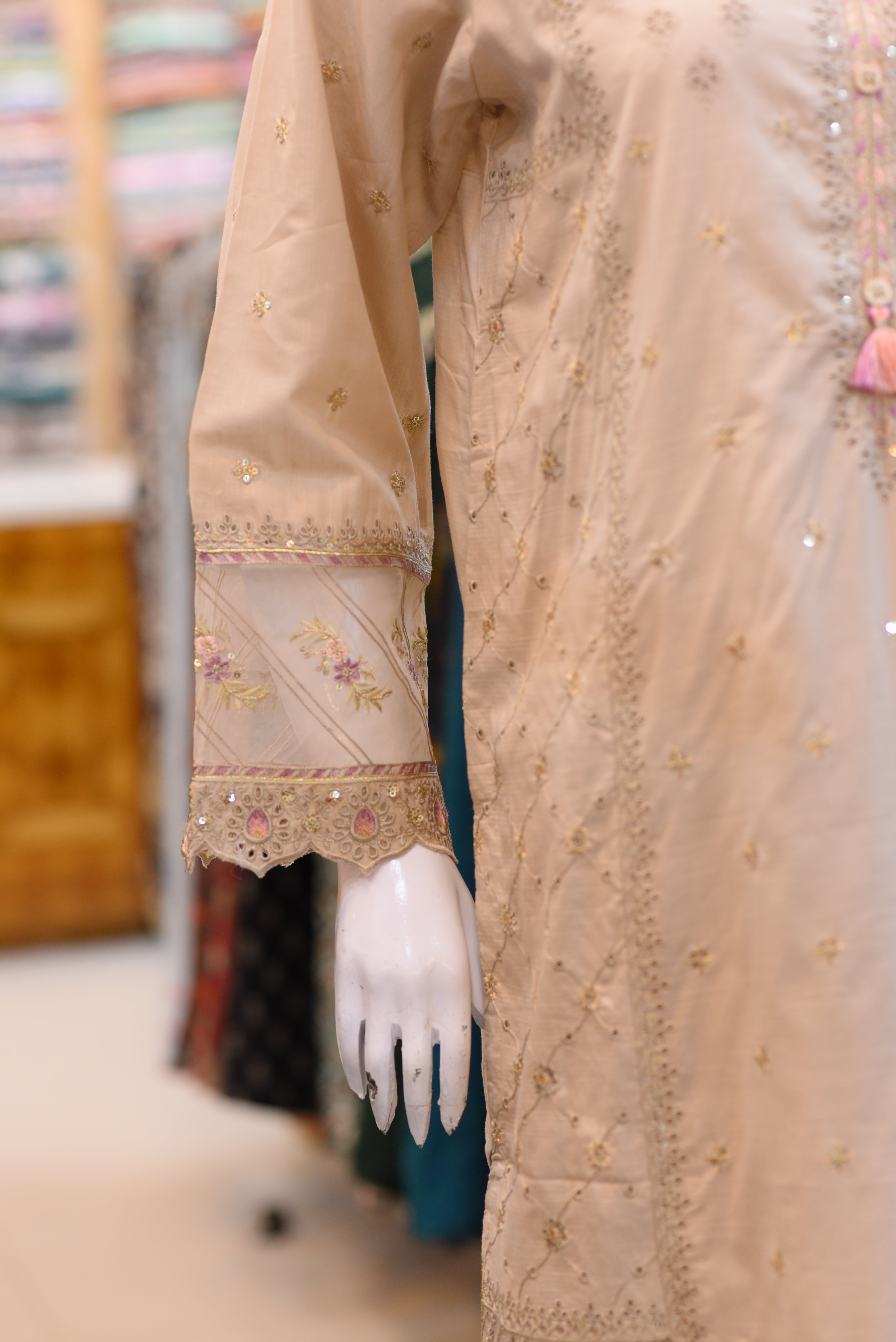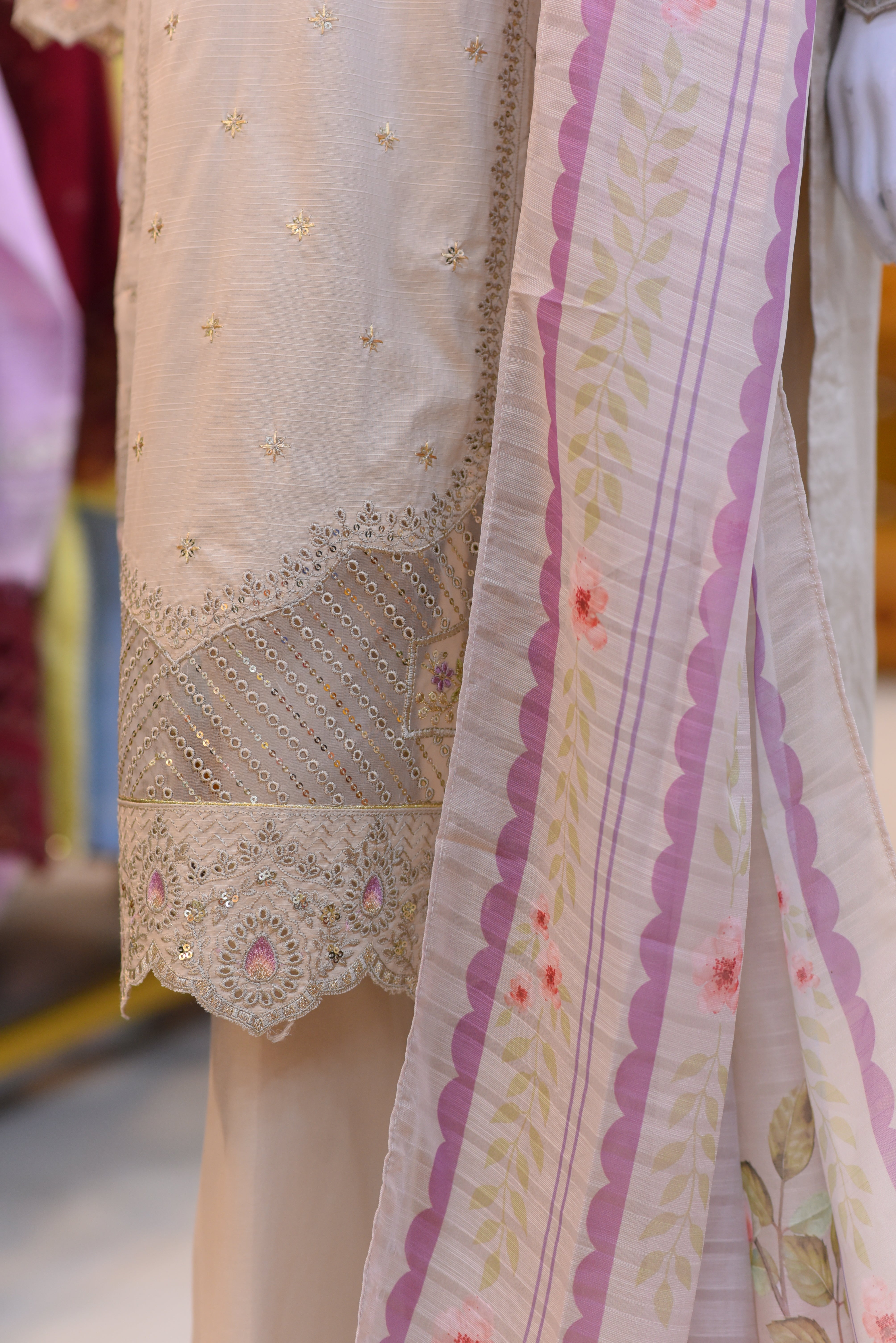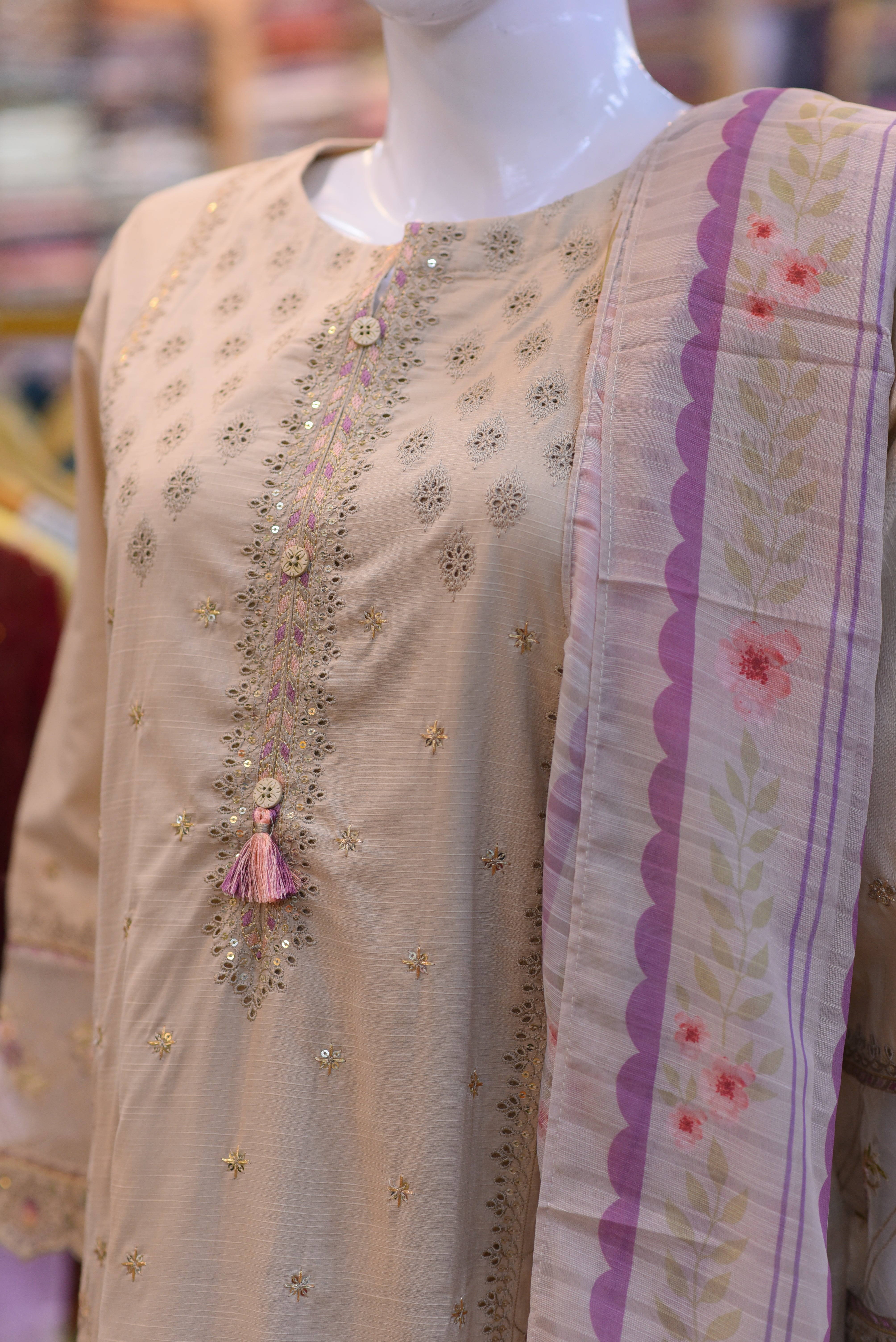 3-PC Stitched Suit With Farshi Shalwar | S2
