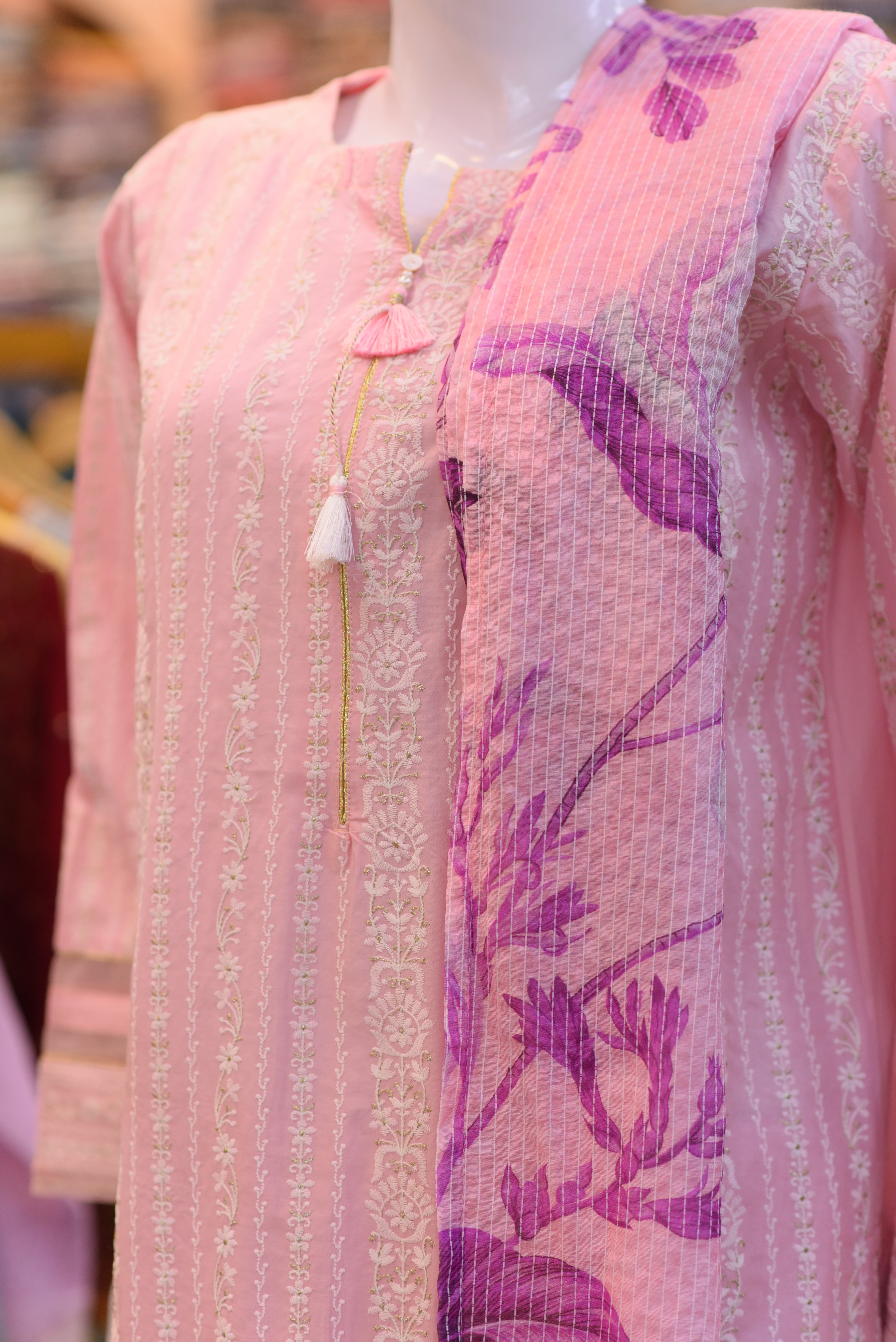 3-PC Stitched Suit With Farshi Shalwar | S3