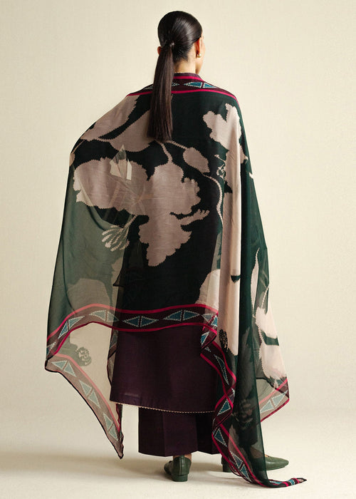 A rich plum maroon shirt paired with a printed trouser and a matching dupatta, creating a timeless contrast of depth and softness. Digital Printed Chiffon Dupatta 2.5 Mtrs Digital Printed Cambric Shirt 3 Mtrs Digital Printed Cambric Trouser 2.4 Mtrs