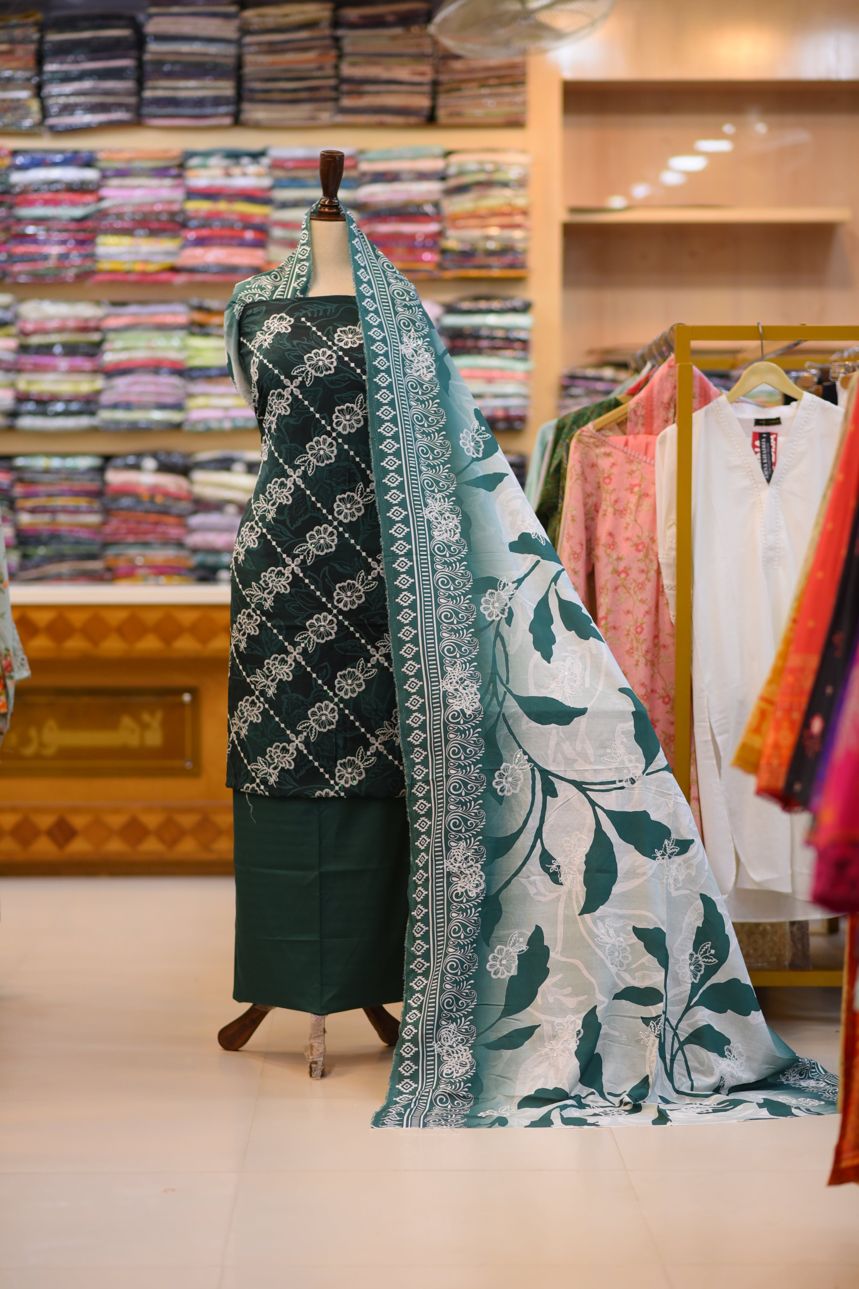 Digital Printed Embroidered VISCOSE WITH printed VISCOSE Dupatta