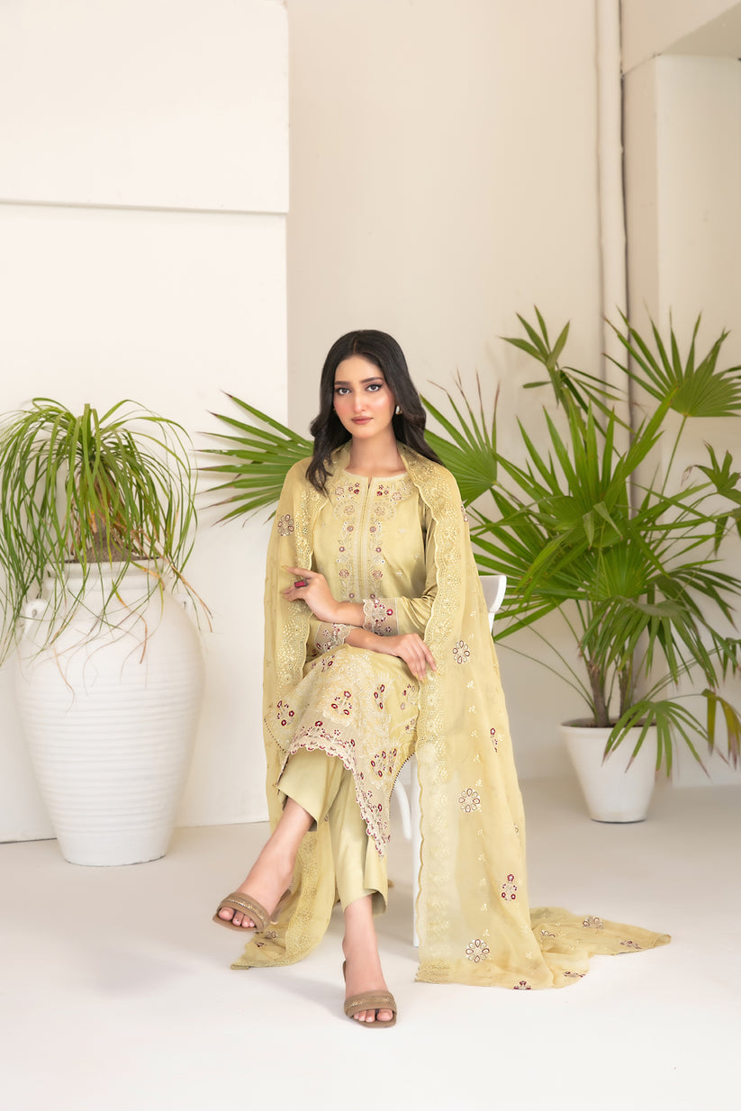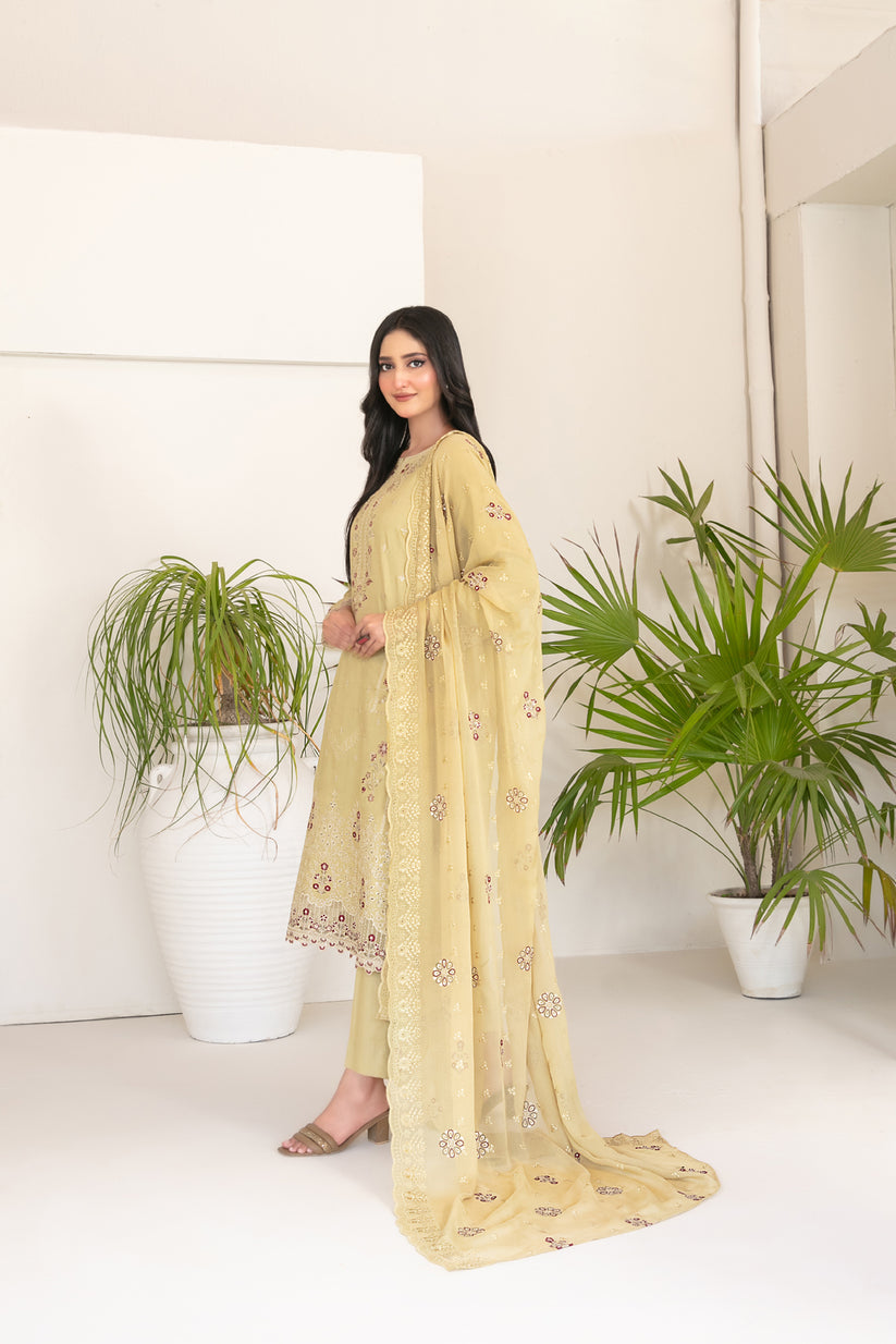 3-PC Unstitched Fancy Embroidered Viscose Najwa By Tawakkal Fabrics | D-4330