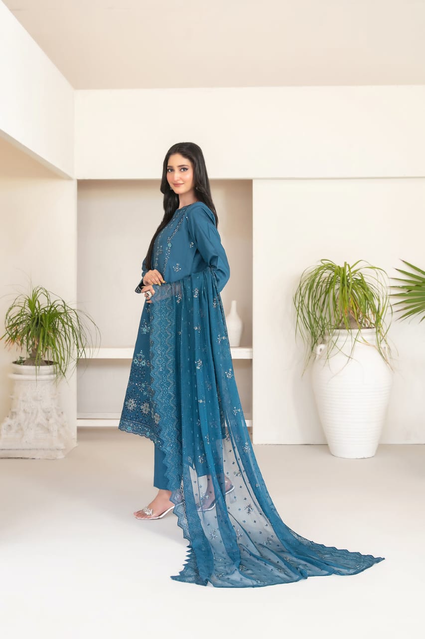 3-PC Unstitched Fancy Embroidered Viscose Najwa By Tawakkal Fabrics | D-4394