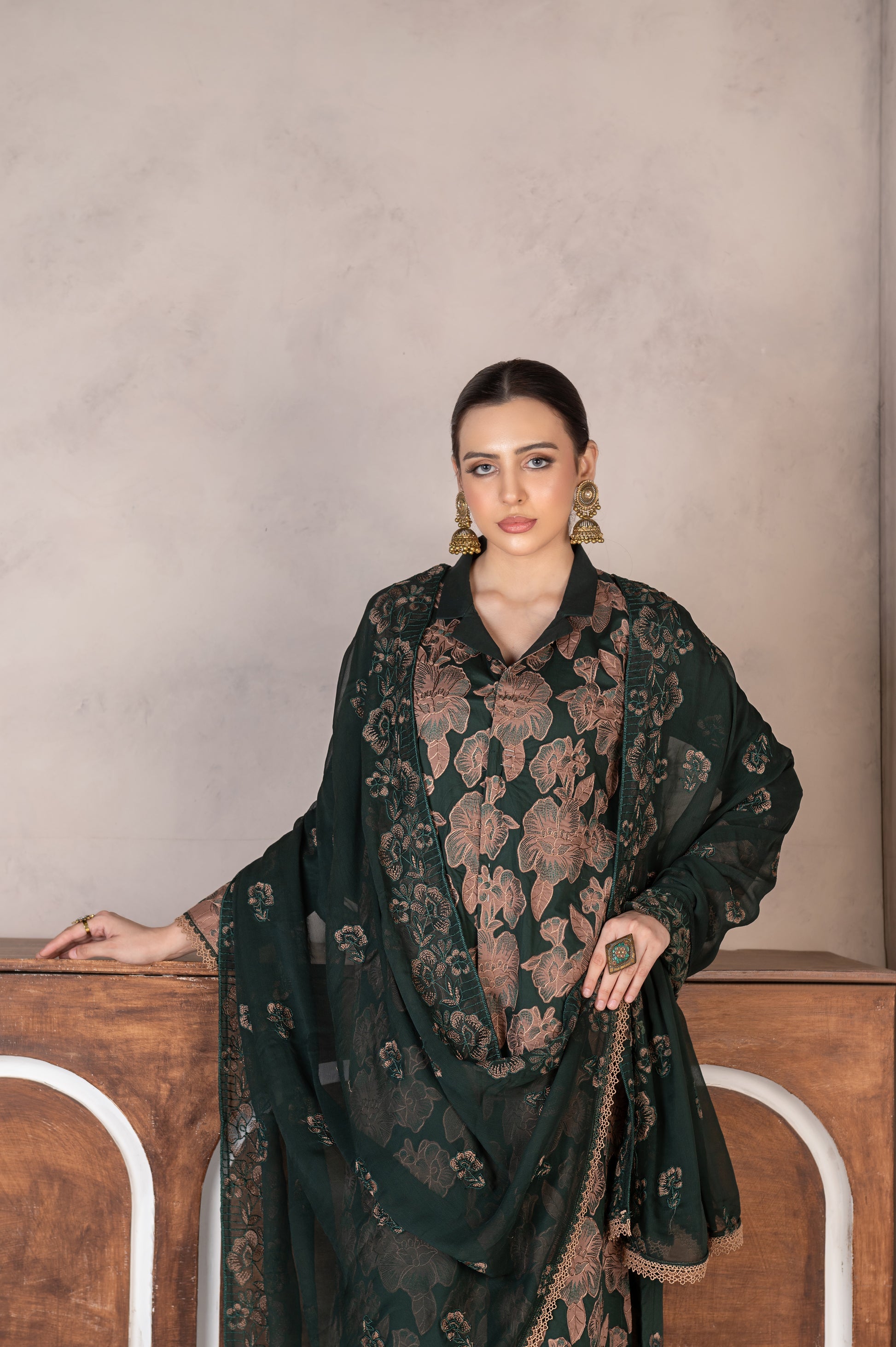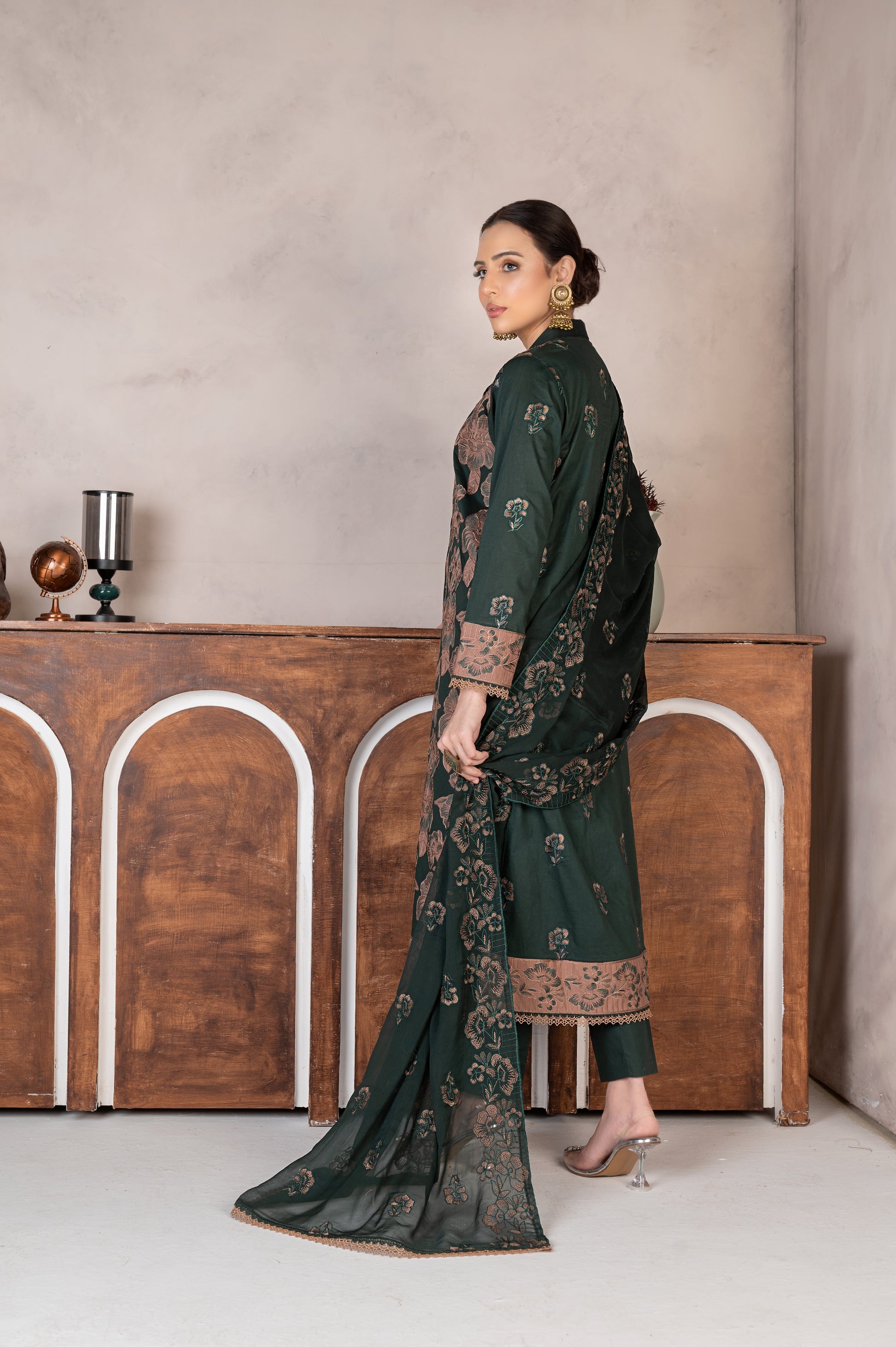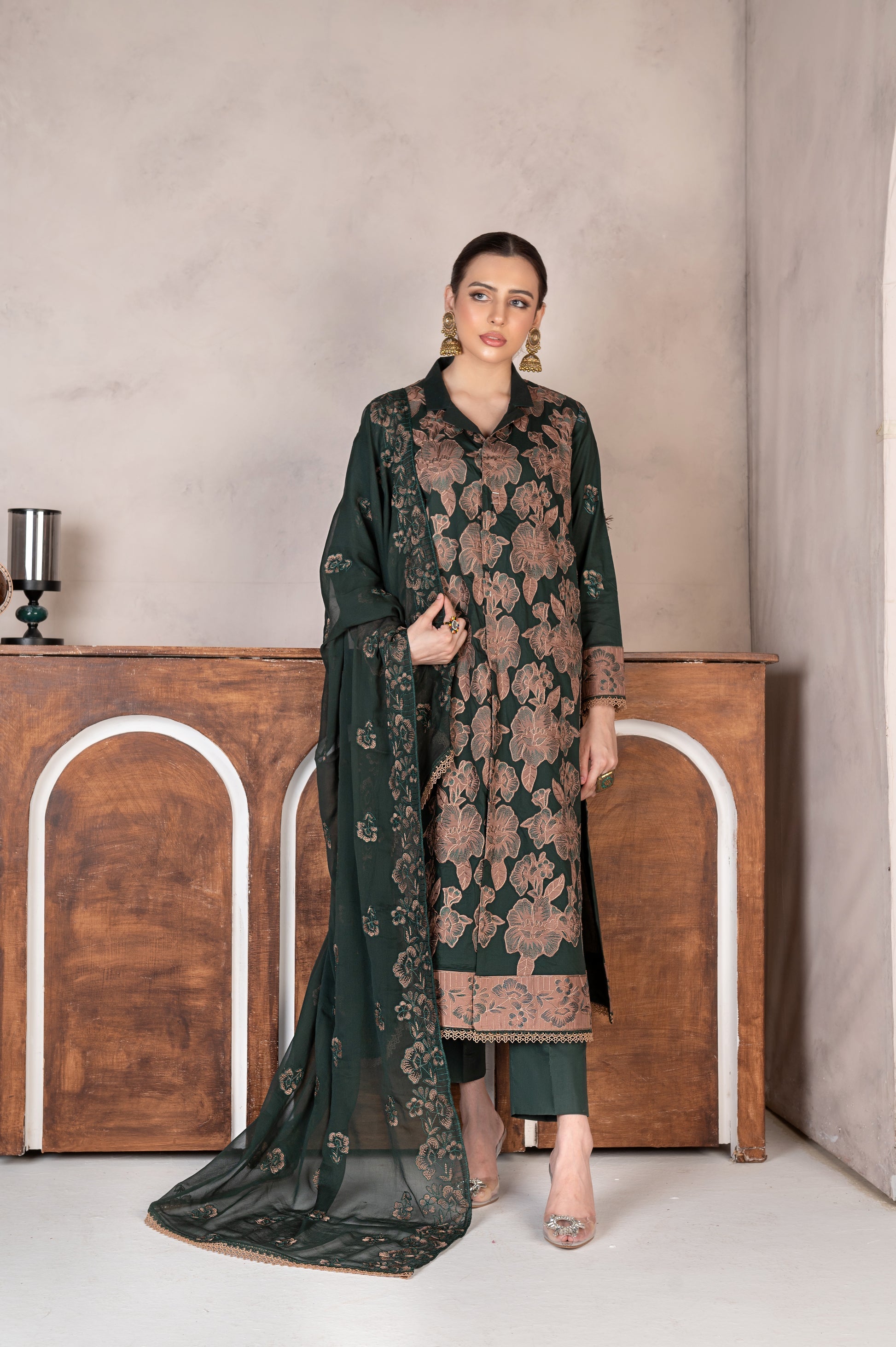 3Pc unstitched lawn embroidered LASER CUTWORK shirt crinkle embroidered dupatta with plain trouser