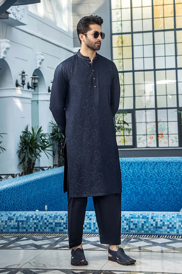 EG -1458 | Semi-Stitched Summer Black & Blue Series Eid Gala By Riwaj Men Swear