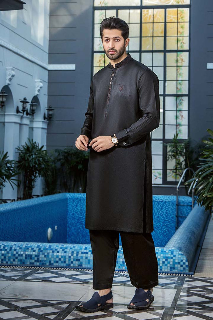 EG -1459 | Semi-Stitched Summer Black & Blue Series Eid Gala By Riwaj Men Swear