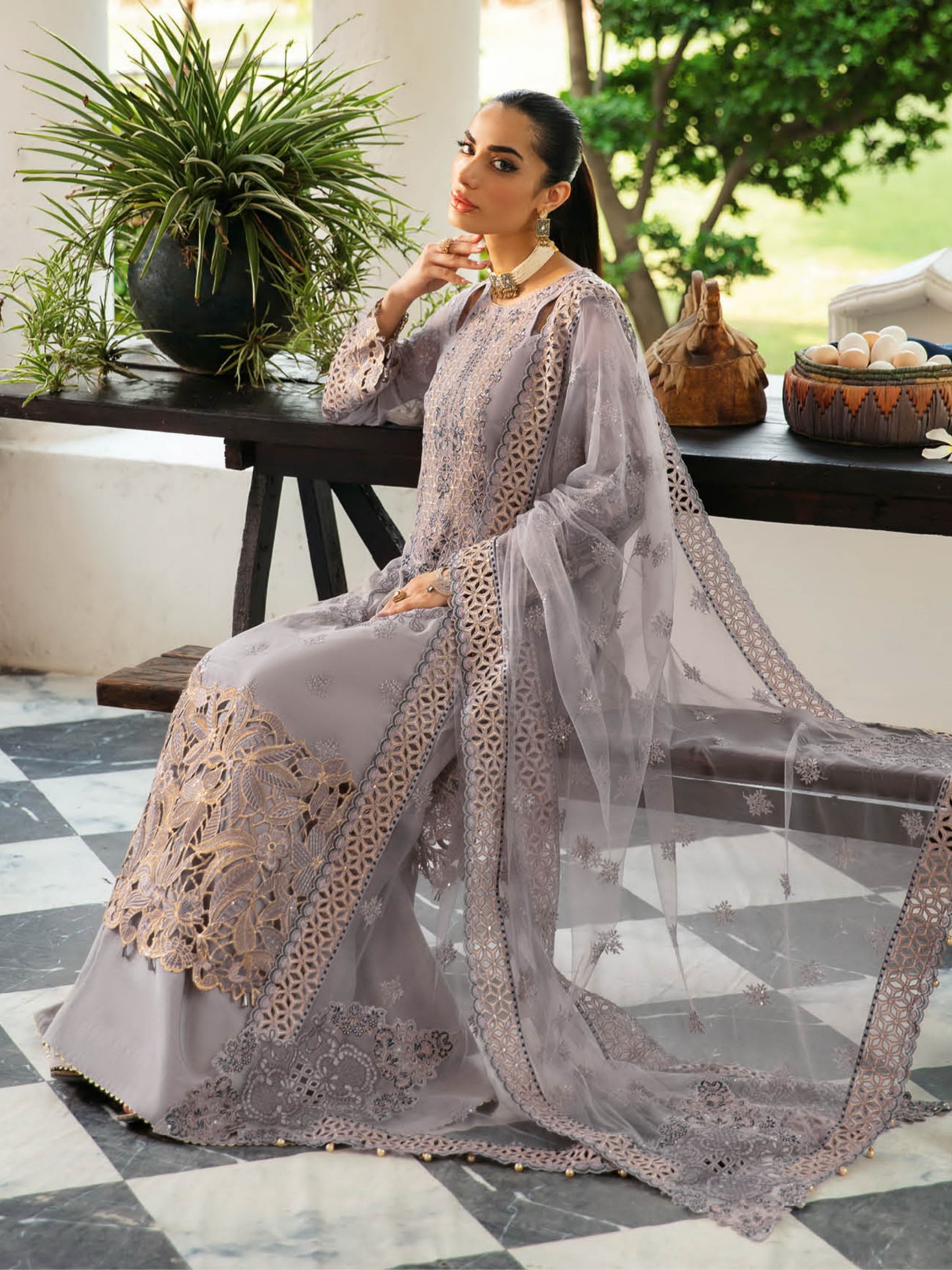 Q-104 | 3Pc Unstitched Suit Winter Luxury Chiffon Dastak By Ramsha