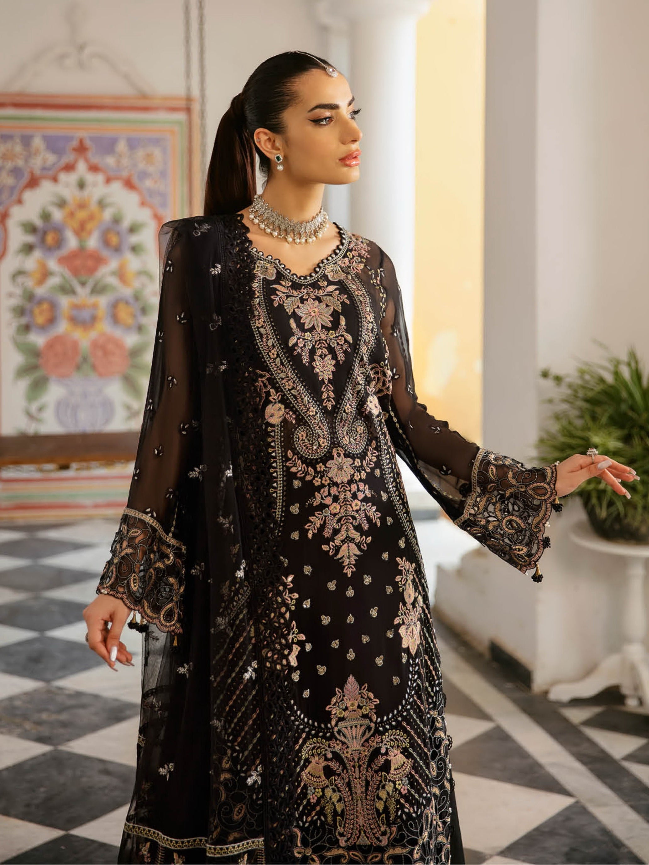 Q-106 | 3Pc Unstitched Suit Winter Luxury Chiffon Dastak By Ramsha