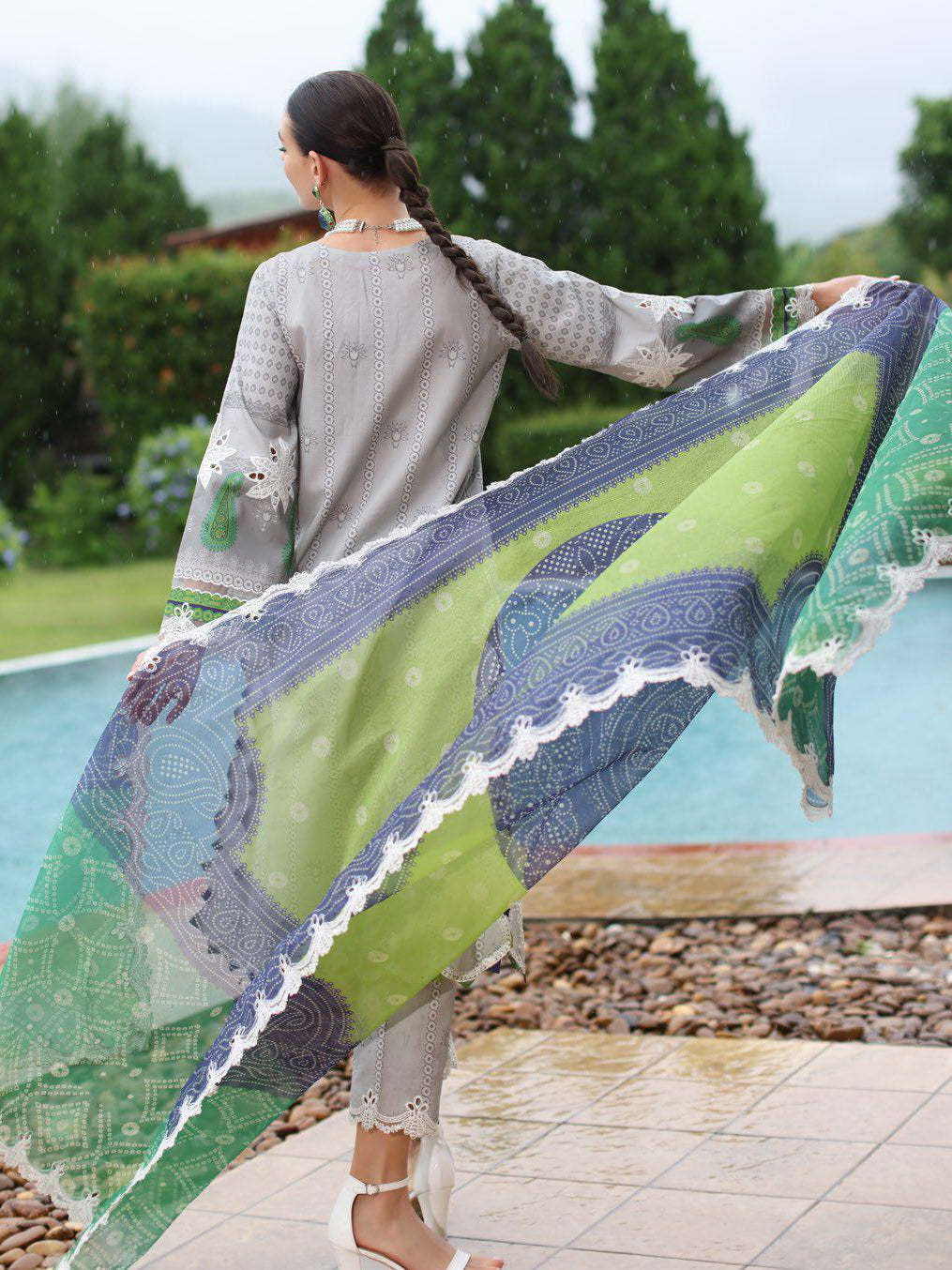 SH5-04 | 3Pc Unstitched Suit Embroidered Printed Chunri Edition Sheen By Charizma