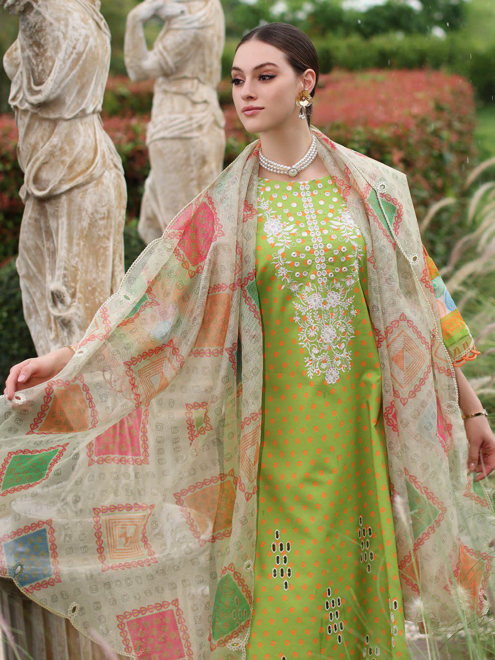 SH5-06 | 3Pc Unstitched Suit Embroidered Printed Chunri Edition Sheen By Charizma