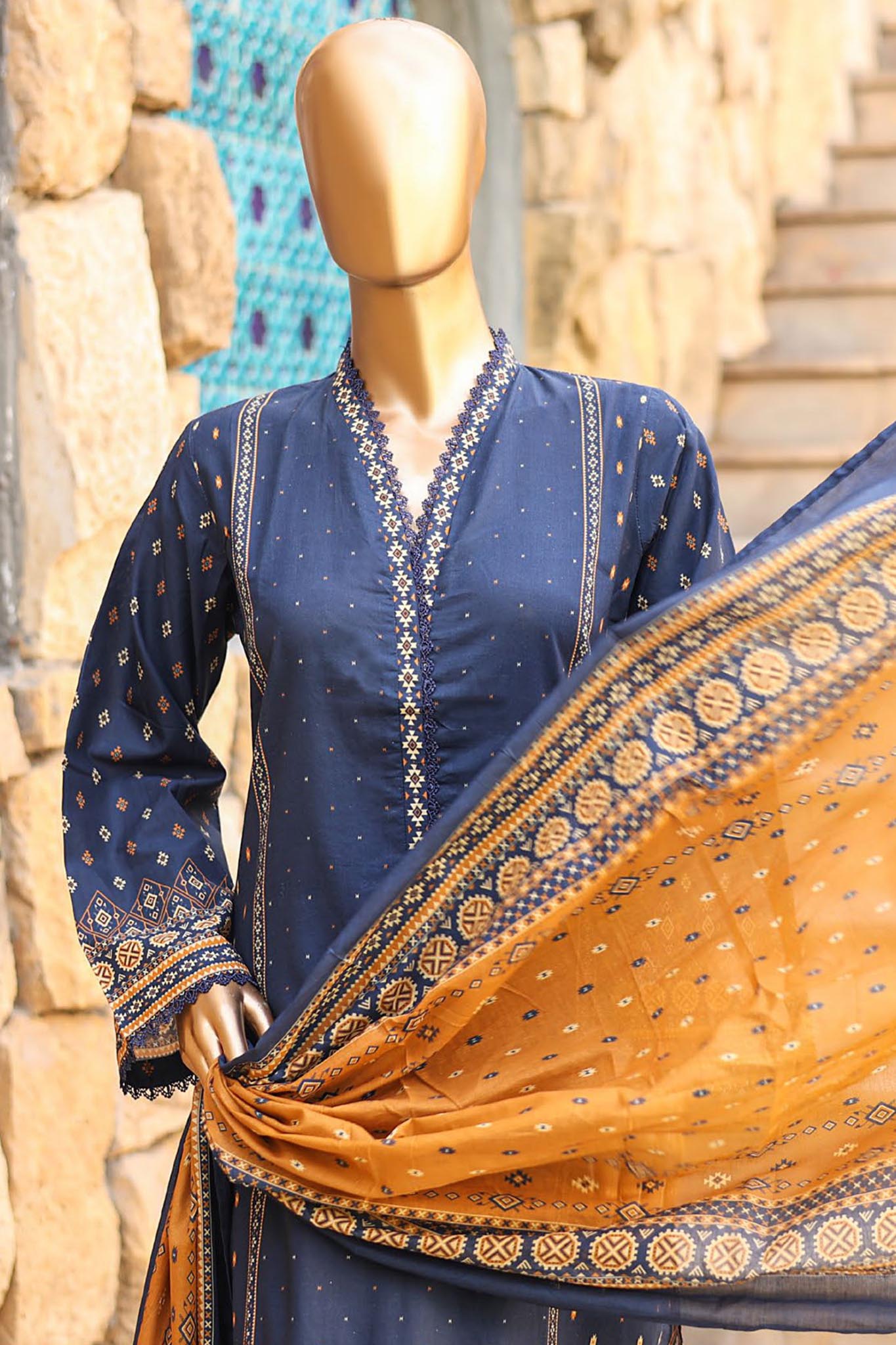 SMLF-664-Blue | 3PC Stitched Basic Lawn By Bin Saeed