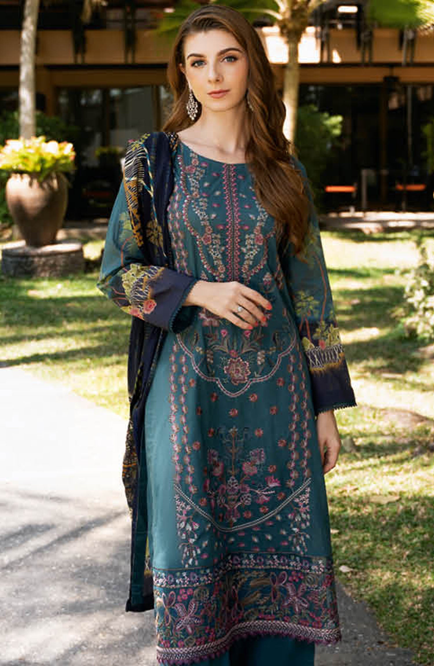 Y-1112 | 3Pc Unstitched Suit Embroidered Lawn Vol-11 Riwayat By Ramsha